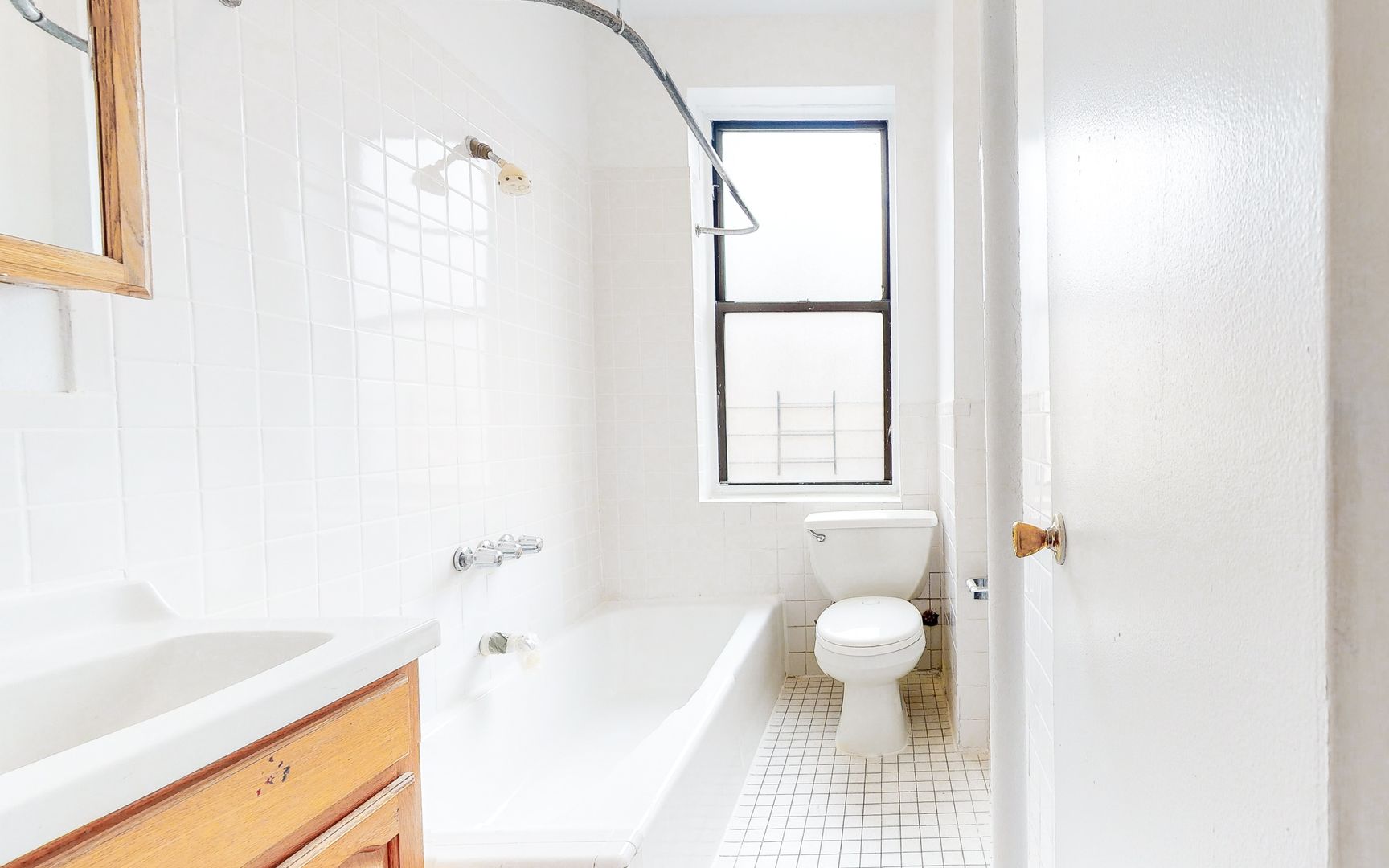 - Pristine Bathroom with Subway Tiles and Elegant Fixtures