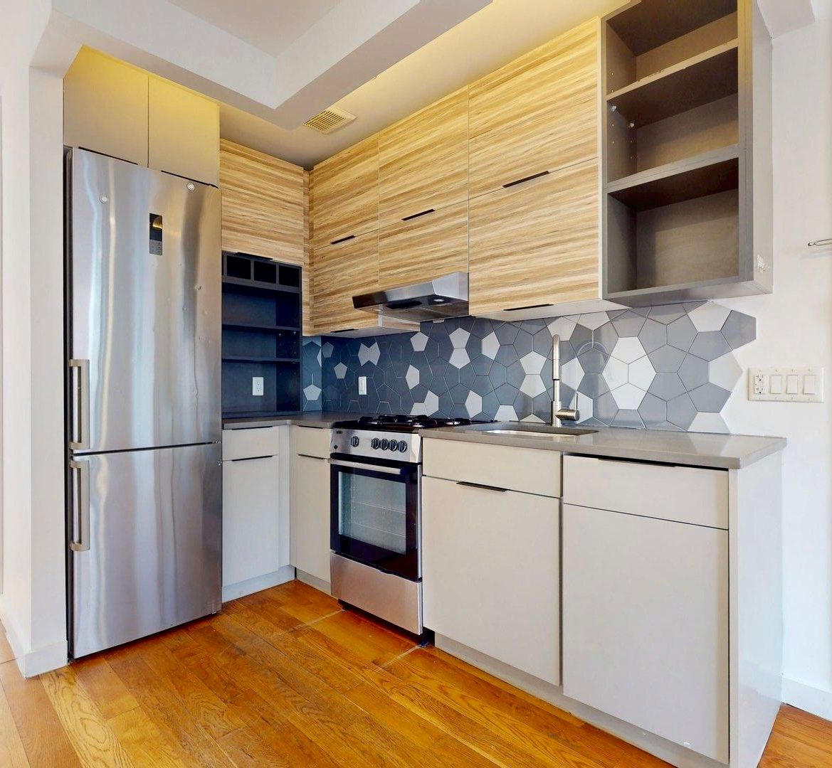 - Open Chef’s Kitchen with Stainless Steel Appliances and dishwasher